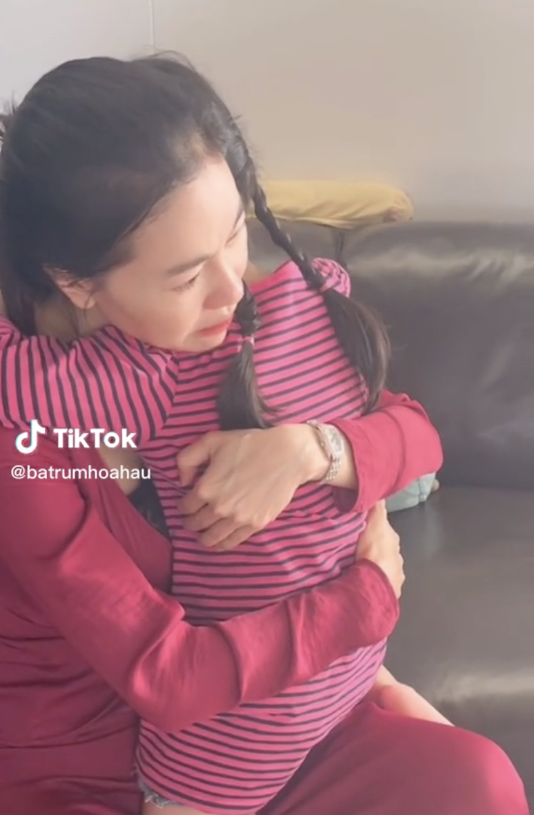 Phạm Kim Dung mắt đỏ hoe, dịu dàng dạy con gái.