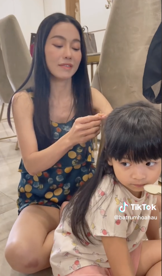 "Bà trùm Hoa hậu" dịu dàng ôm con gái vào lòng và giảng dạy: "Con không được đánh em, đánh mẹ rồi nạt nộ mọi người như vậy nha. Con là con gái, con phải dịu dàng, con phải nhẹ nhàng chứ. Con như vậy mẹ đau lòng lắm con biết không? Mẹ nhìn con hung dữ như vậy, mẹ rất là đau lòng con biết không?". Khi dạy con, "dì Dung" không quên hôn bé, vuốt tóc, nhìn thẳng vào mắt Annie,... để trấn an con.