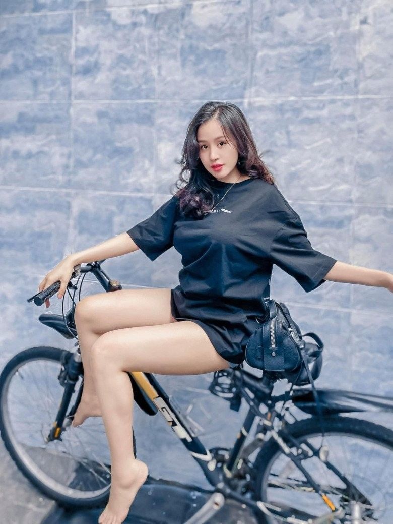 Bà Tưng thường xuyên đạp xe quanh nhà để đốt cháy mỡ thừa.