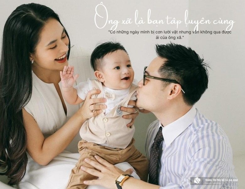 Trộm vía là ông xã chăm con 100% luôn nha. Anh ấy còn giành chăm con với mình nữa ấy! Sơ hở ra là bế bé Liam đi mất tiêu. Biết vợ làm lĩnh vực đẹp nên anh ủng hộ hết mình, cứ đều đặn 5h sáng mỗi ngày là ông xã kêu đi tập thể dục.