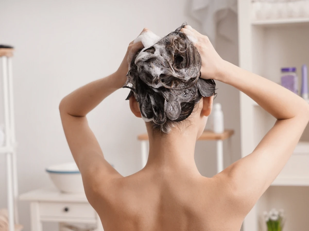 3. Chỉ thoa dầu gội lên thân tóc