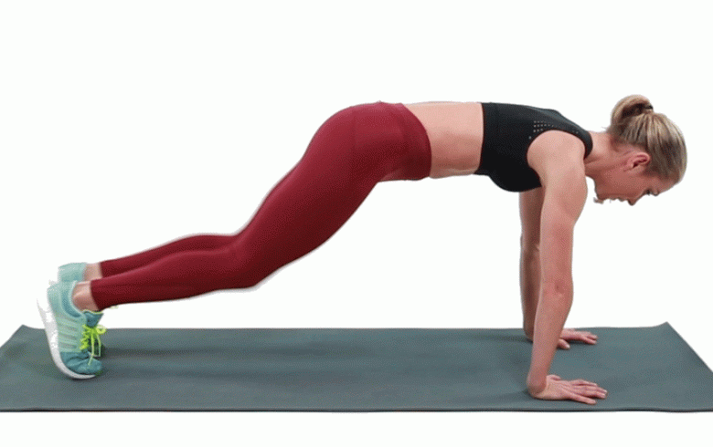 Chị em mới tập hay tay còn yếu có thể bỏ qua bước chống đẩy mà chỉ dừng ở high plank, sau đó, bận chân thu về sát tay và đứng dậy, nhảy gót chân khỏi mặt đất.