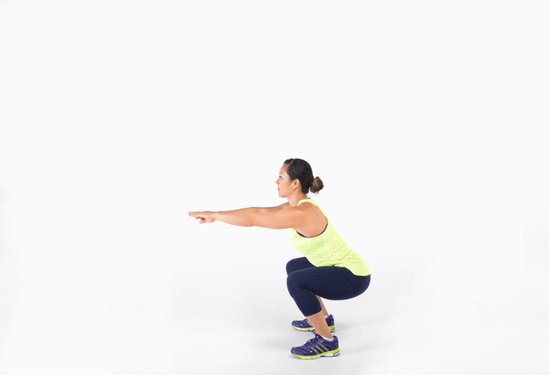Bạn bắt đầu bằng tư thế squat thông thường, sau đó huy động các cơ vùng trung tâm như bụng, lưng và nhảy lên thật mạnh. Khi tiếp đất, hạ thấp cơ thể trở lại tư thế squat để hoàn thành một lượt. Tiếp đất càng nhẹ nhàng càng tốt, đòi hỏi sự kiểm soát.