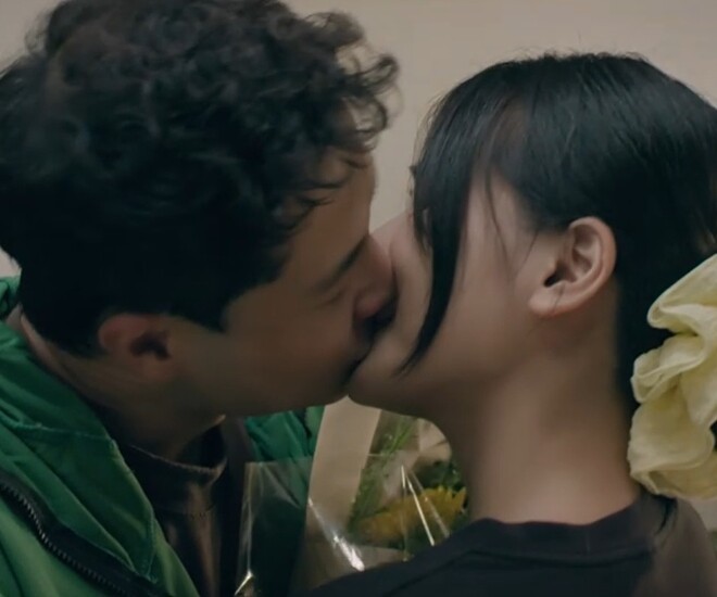 Cảnh nhân vật của Thanh Sơn khóa môi bạn gái trong phim mới.