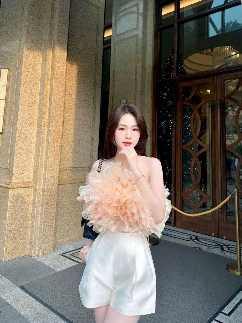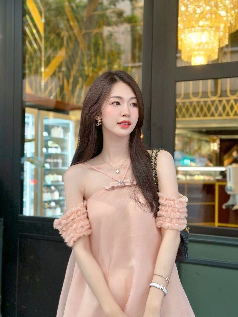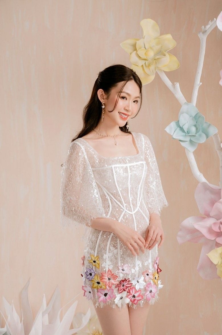 Thiết kế dịu dàng nhưng không kém phần quyến rũ giúp Minh Anh toả sáng hút hồn.