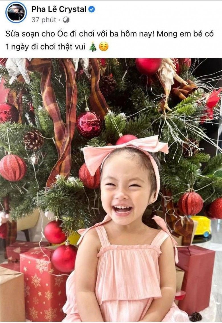 Trên trang cá nhân, ca sĩ Pha Lê đăng hình con gái cười tươi, phía sau là cây thông Noel. Cô viết: “Sửa soạn cho Ốc đi chơi với ba hôm nay! Mong em bé có 1 ngày đi chơi thật vui”. Những ngày qua, cô liên tục đấu tố căng thẳng với chồng và bạn gái mới của anh. Theo livestream và những bài đăng dài trên mạng xã hội thì Pha Lê cho biết con gái đến nhà chơi với ba và nhân tình nhưng ngay lúc đó bị bệnh nặng phải nhập viện. Giữa cô và tình mới của chồng không bên nào thua kém, cư dân mạng cũng xoay vòng vì không rõ thực hư như ra sao.