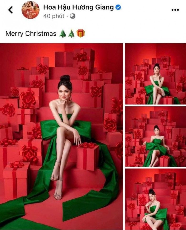 Hoa hậu Hương Giang mừng Giáng sinh bằng bộ ảnh khoe nhan sắc đẹp rực rỡ. Cô khiến người hâm mộ không ngớt lời khen ngợi: "Đẹp quá cô bé ơi, Giáng sinh vui vẻ hạnh phúc thành công nhé em", "Chúc chị Giáng sinh an lành hạnh phúc thật nhiều niềm vui sức khỏe", "Chị yêu xinh xắn quá trời. Em chúc chị Giáng sinh an lành, ấm áp",...