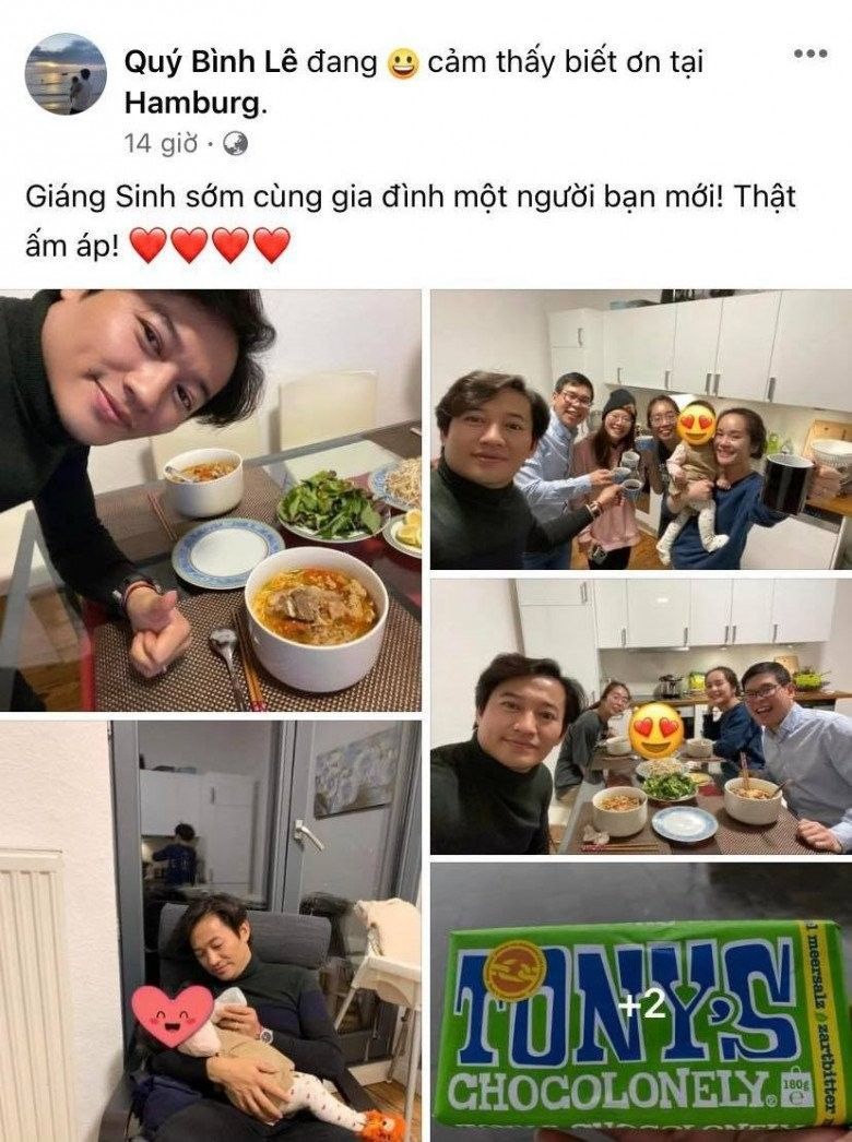 Diễn viên Quý Bình ăn mừng Giáng sinh bên cạnh gia đình, người thân yêu. Anh viết: "Giáng Sinh sớm cùng gia đình một người bạn mới! Thật ấm áp!".