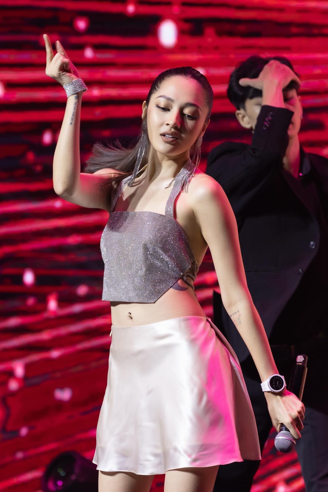 Trước đó, vòng eo "con kiến" của nữ ca sĩ từng được khen là "ăn đứt" Ngọc Trinh.