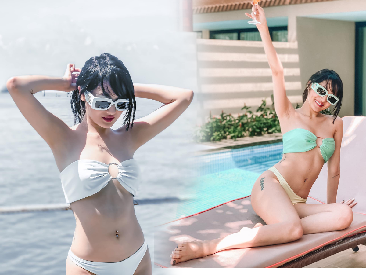 Cụ thể, trong bức ảnh mới nhất, Bảo Anh thoải mái tạo dáng trong trang phục bikini cùng một người "giấu mặt". Cô diện set đồ bơi 2 mảnh màu hồng gợi cảm, khoe trọn vóc dáng quyến rũ. Cùng với gương mặt tươi tắn, nhan sắc Bảo Anh vô cùng cuốn hút. Chàng trai ngồi cạnh người đẹp được che kỹ diện mạo khiến người xem tò mò không biết đây có phải nam vũ công đã cùng cô "khóa môi" trước đó hay không.