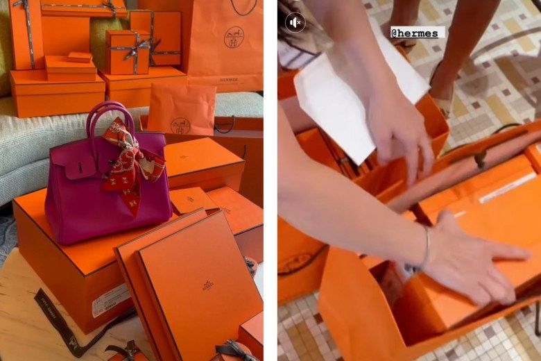 Mới đây, cô giáo Midu lại tiếp tục là nhiều người "mắt tròn mắt dẹt" khi chia sẻ khoảnh khắc sắm đồ hàng hiệu sang chảnh. Theo đó, người đẹp 8X đăng tải hình ảnh bên "núi đồ" hàng hiệu từ nhà Hermes - một trong những thương hiệu thời trang được giới thượng lưu ưa chuộng và có giá trị đắt đỏ nhất nhì thị trường.