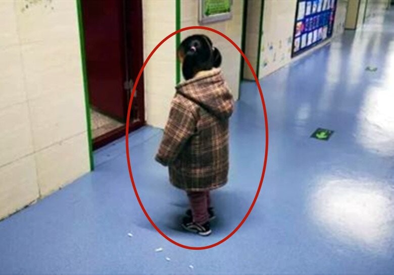 Cụ thể, thầy hiệu trưởng Mao Hengli của trường tiểu học trực thuộc trung học Trịnh Châu (Hà Nam, Trung Quốc), trong lúc kiểm tra các lớp, đã bắt gặp cảnh một cô bé bị đứng phạt ở ngoài cửa. Thầy thấy em thỉnh thoảng nhón chân nhìn vào lớp, nên ban đầu khá bực mình vì tưởng em không chấp hành kỷ luật. Nhưng khi tiến lại gần và bế đứa trẻ 4 tuổi vào lòng, thầy Mao mới phát hiện bé đang nước mắt lưng tròng và càng ngạc nhiên hơn khi nhóc tỳ chính là con út của cô giáo Wu Huimin đang dạy trong lớp.