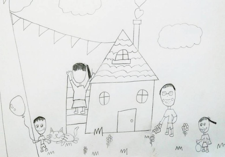 "Con gái bảy tuổi của tôi đã vẽ tôi và gia đình tôi. Con bé nói rằng bố đang tưới hoa, con bé đang chơi với quả bóng, anh trai đang chơi với con mèo, và mẹ đang treo cờ để trang trí. Vì vậy, không có khuôn mặt, đó là lưng của mẹ. Thứ tự mà đứa trẻ vẽ các nhân vật là anh trai, bố, chính mình và mẹ cuối cùng” - mẹ Kiến An giải thích. Lời giải thích này khiến cô Linh vỡ lẽ, hoá ra là do người lớn như cô nghĩ nhiều mà thôi.