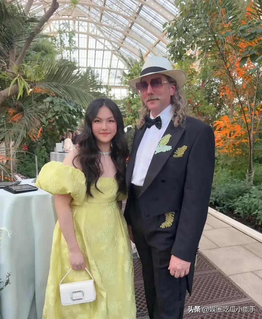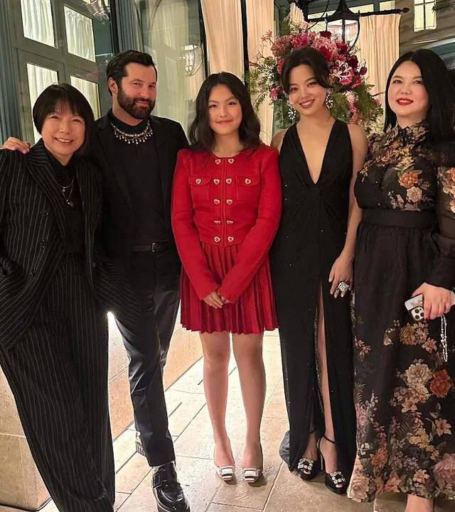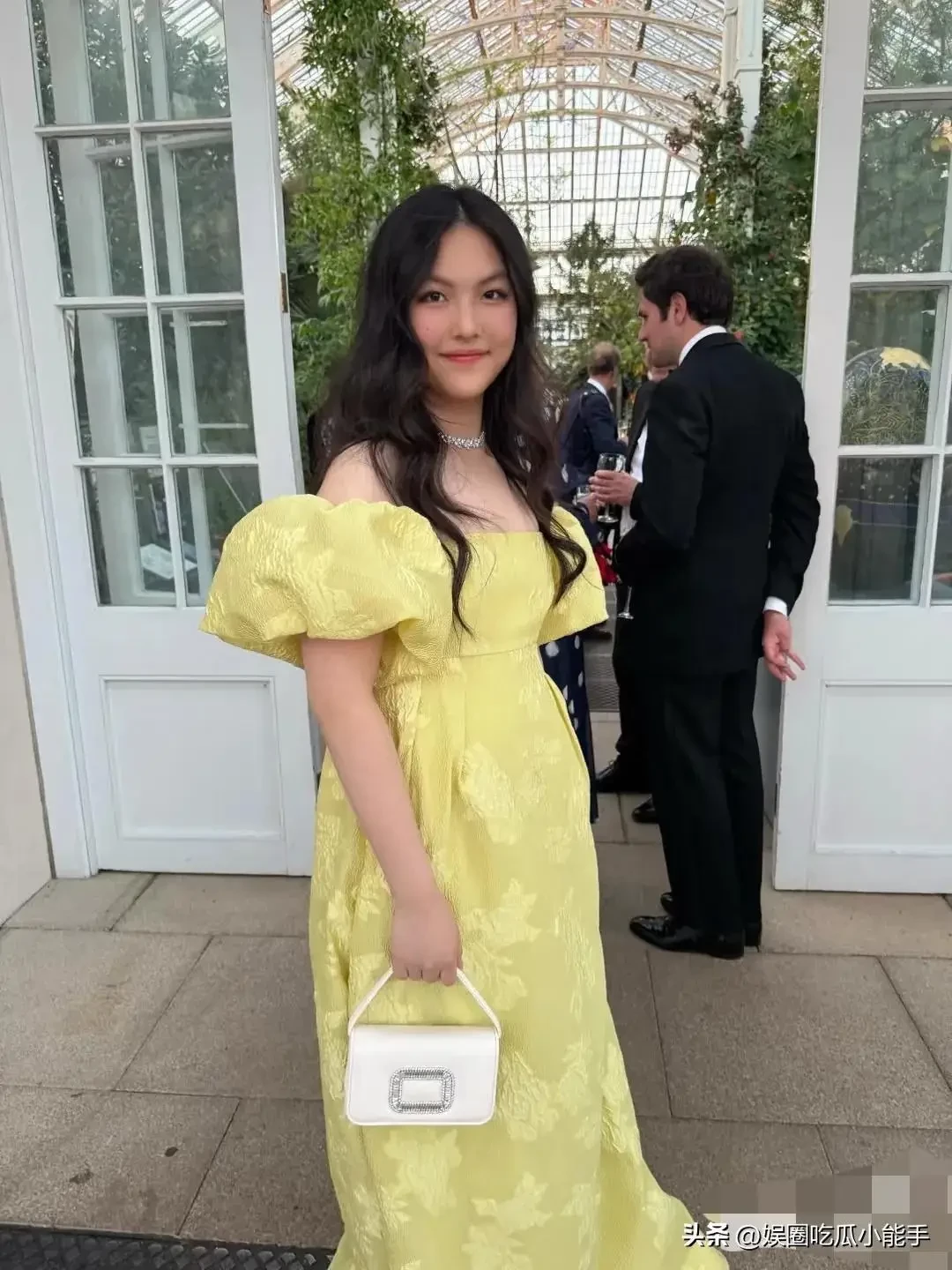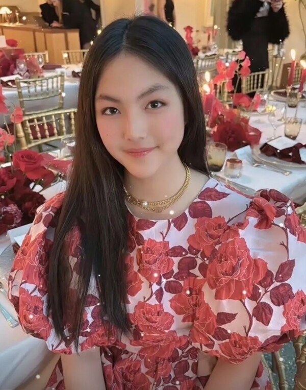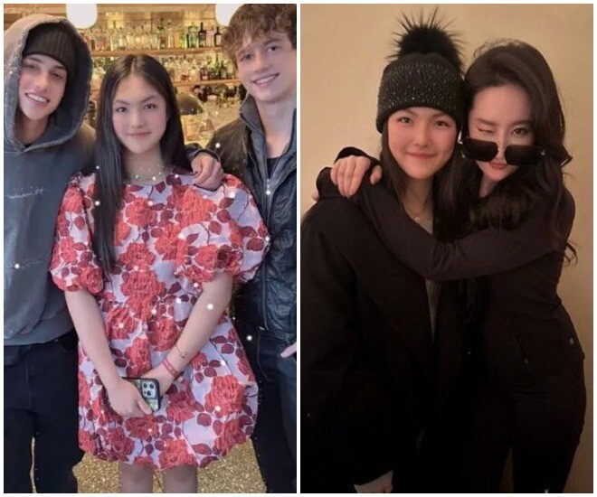 Con gái 14 tuổi của Lý Tương diện một chiếc váy dài hở vai màu vàng, tóc xoăn và xách theo một chiếc túi nhỏ đắt tiền tham gia tiệc hoàng gia cùng mẹ. Cô bé thoải mái chụp ảnh với những nhân vật nổi tiếng trong bữa tiệc.