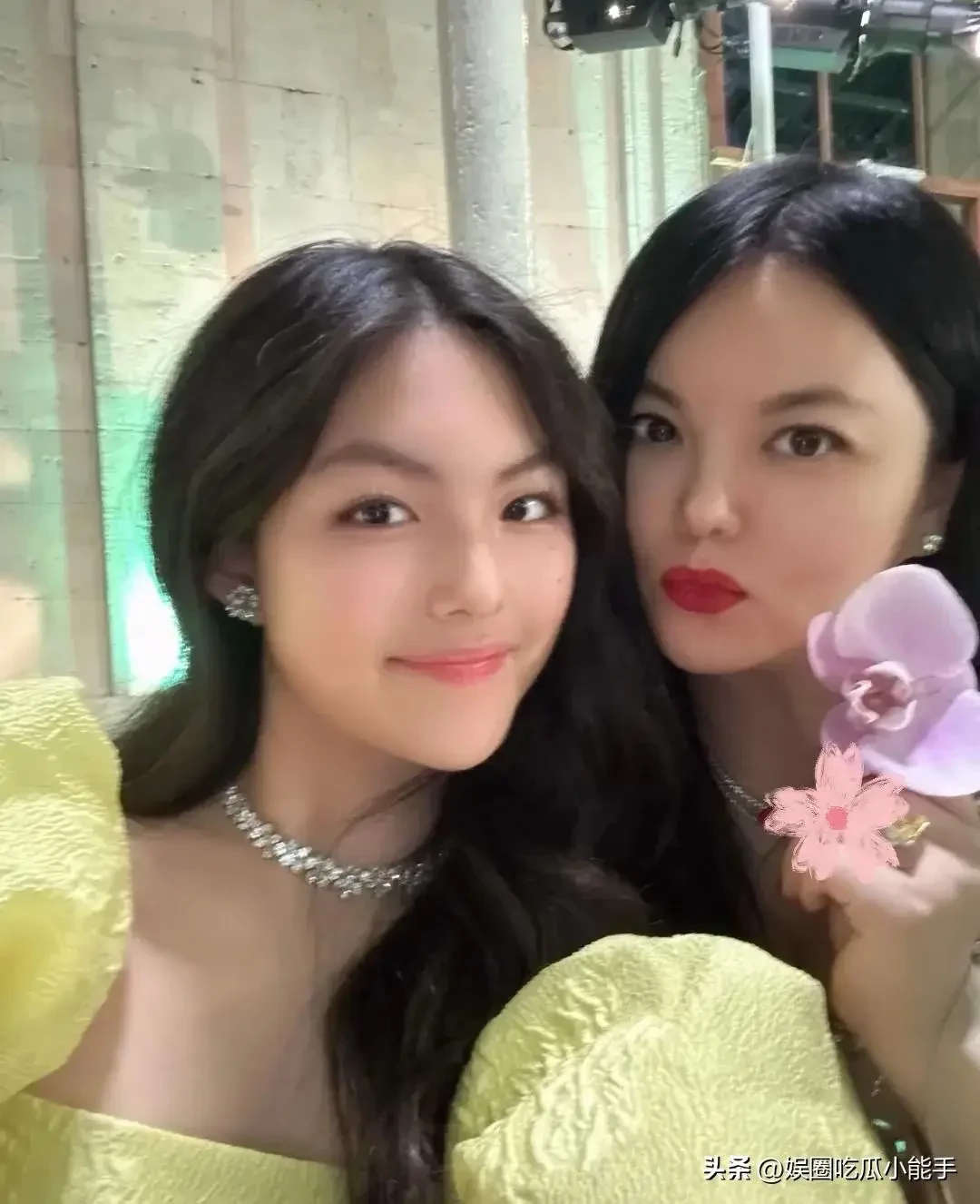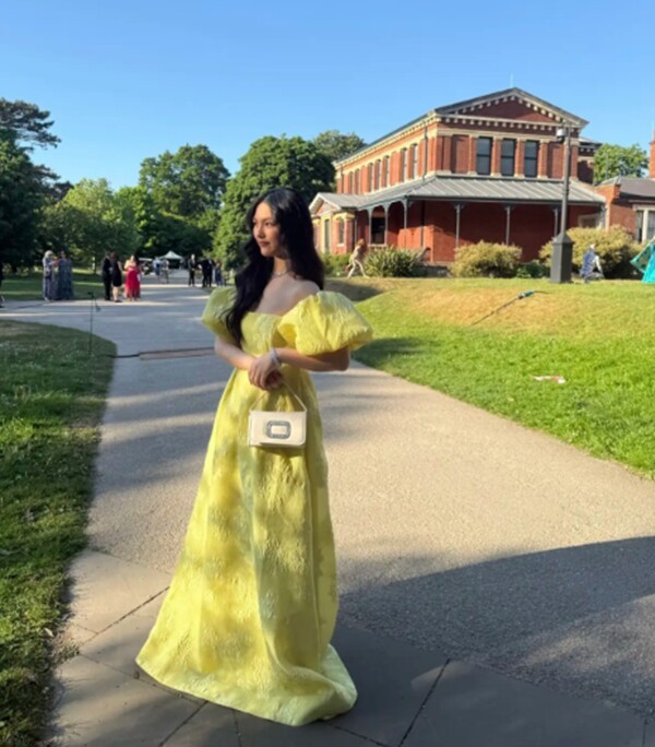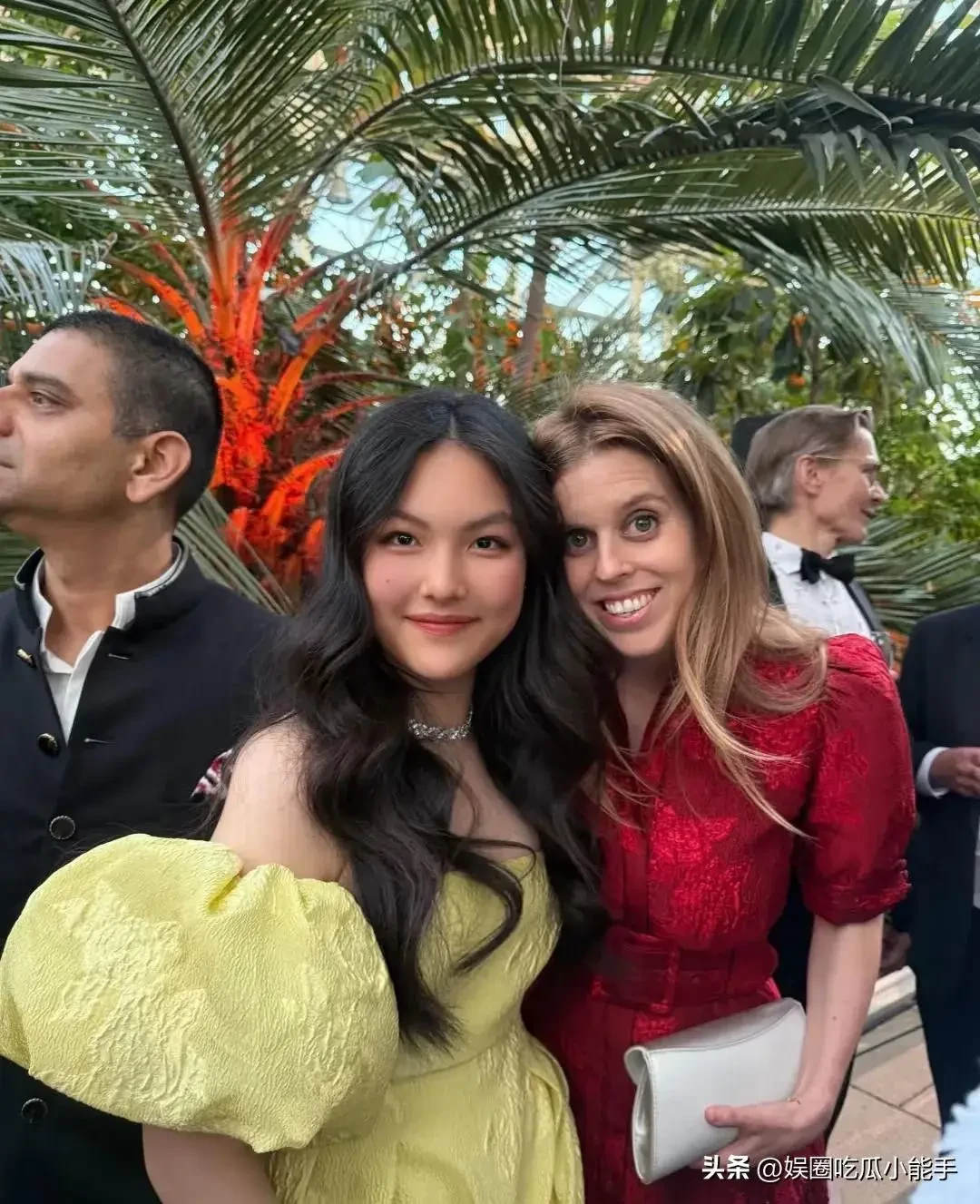 Con gái 14 tuổi của Lý Tương diện một chiếc váy dài hở vai màu vàng, tóc xoăn và xách theo một chiếc túi nhỏ đắt tiền tham gia tiệc hoàng gia cùng mẹ. Cô bé thoải mái chụp ảnh với những nhân vật nổi tiếng trong bữa tiệc.