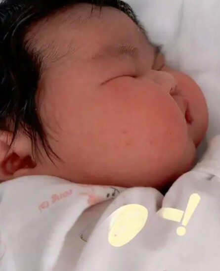 Theo thông tin từ bệnh viện, em bé nặng 11,2 kg và cao 58 cm, gần bằng trọng lượng của hai đứa trẻ sơ sinh bình thường. Hình ảnh em bé cuộn tròn ngủ trên giường bệnh với khuôn mặt bầu bĩnh và đôi má phúng phính như bánh bao, khiến mọi người không khỏi thích thú. Nhiều người đã ví nhóc tỳ như "người khổng lồ".