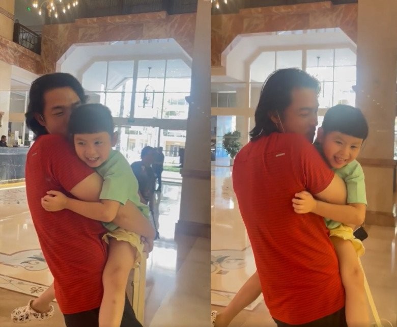 Bé Sumi quấn quýt bên bố mỗi khi gặp mặt.