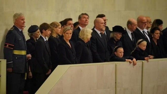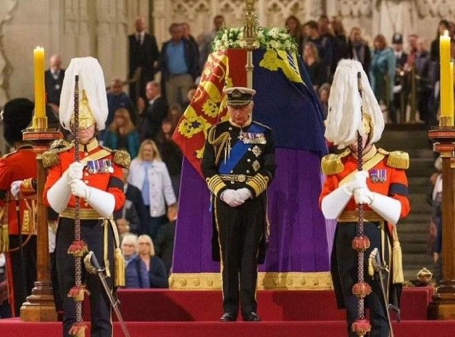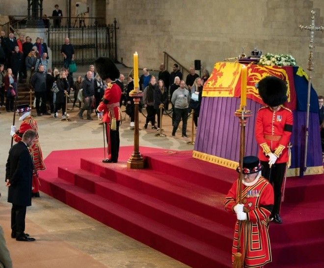 Được biết, lúc 19h30 ngày 16/9, Vua Charles III, Công chúa Anne, Hoàng tử Andrew và Hoàng tử Edward đã cùng xuất hiện cạnh Đội cận vệ hoàng gia bên linh cữu của Nữ hoàng Elizabeth II trong lễ canh gác tưởng niệm ở Đại sảnh Westminster. Ngoài ra, một số thành viên trong gia đình hoàng gia cũng có mặt để theo dõi buổi lễ. Sau khoảng 15 phút, nhà vua cùng các em rời đi.
