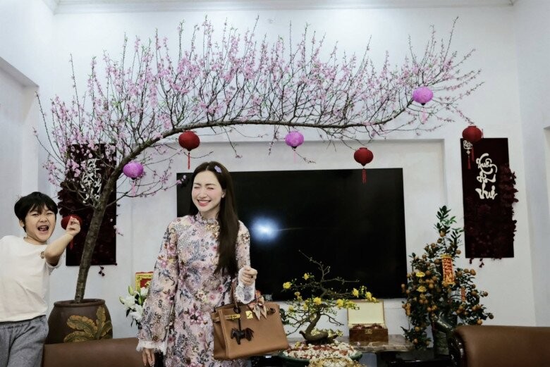 Tết vừa qua, Hòa Minzy đã hé lộ bên trong căn nhà. Góc trang trí Tết đậm chất truyền thống với cành đào dáng huyền mềm mại, điểm xuyết những chiếc đèn lồng đỏ rực rỡ phía trên tivi màn hình lớn.