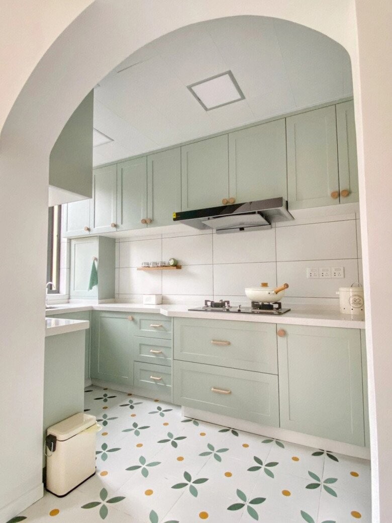 Bếp là nơi nấu nướng, sinh nhiệt, vì vậy nên ưu tiên các gam màu sáng, đặc biệt là màu trắng, để tạo cảm giác sạch sẽ, thông thoáng. Theo phong thủy, bếp mang yếu tố hỏa, trong khi màu trắng thuộc kim, có tác dụng tiết chế bớt tính nóng của lửa, từ đó giúp không khí trong gia đình hài hòa hơn, giảm bớt căng thẳng và mâu thuẫn.