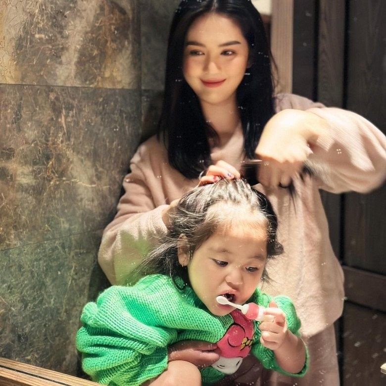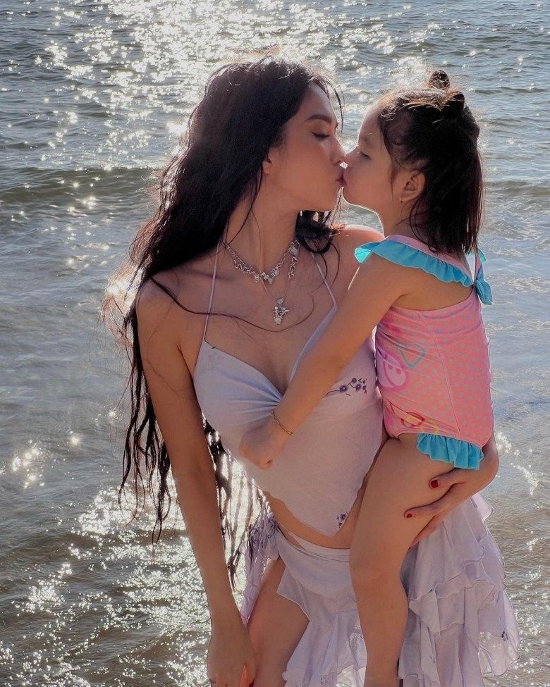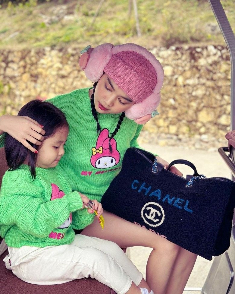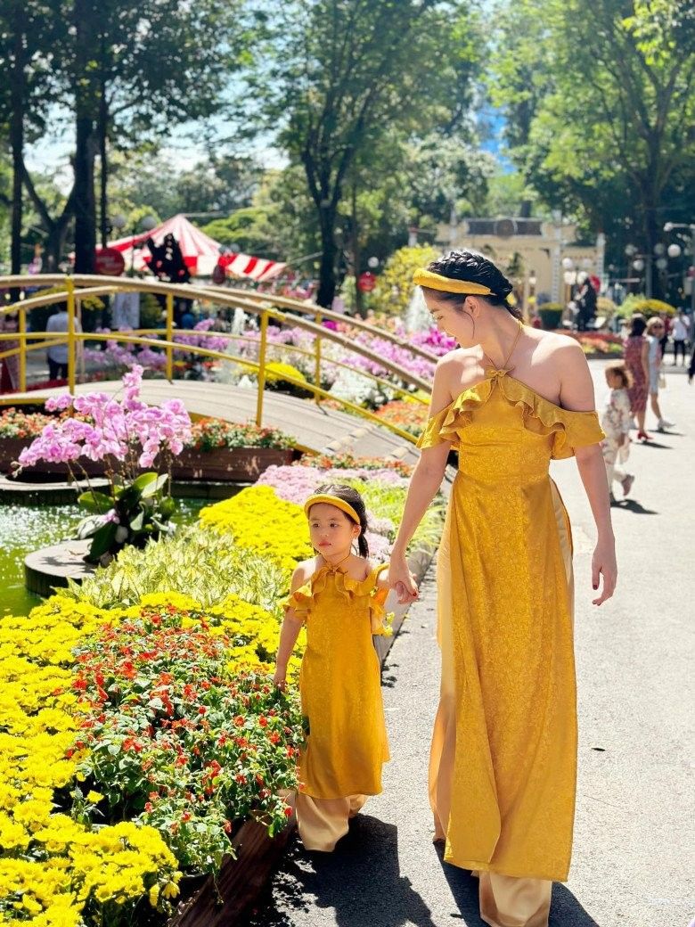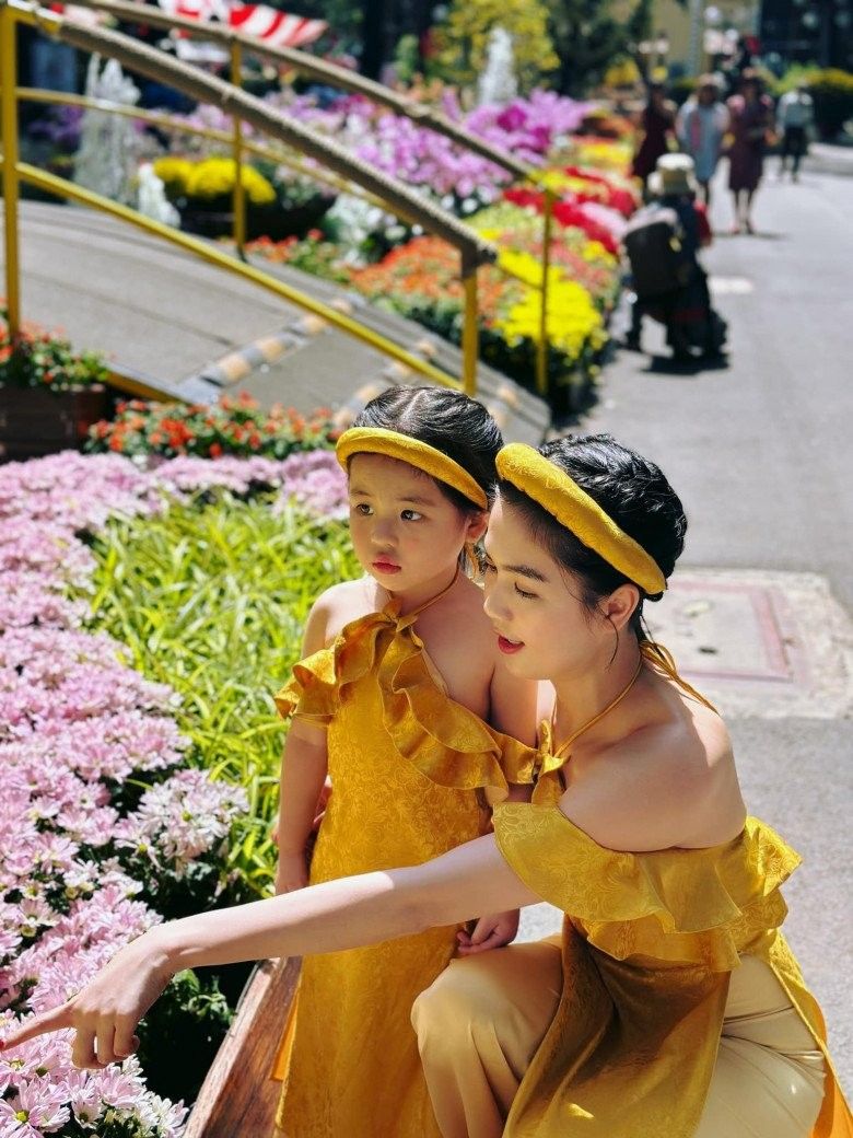 Người đẹp quê Trà Vinh cho biết cô vui khi có cháu gái giống mình và tiết lộ đang 'đào tạo' để bé He không chỉ có ngoại hình mà sở thích, phong cách thời trang cũng như cô ruột.