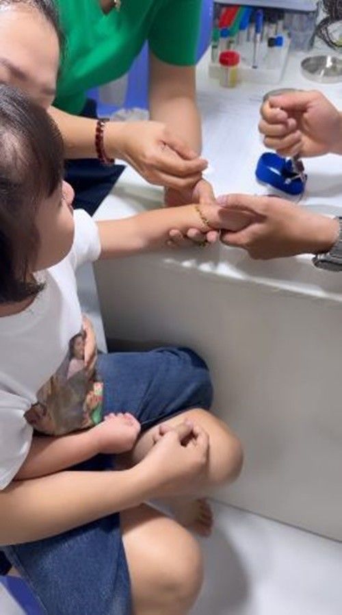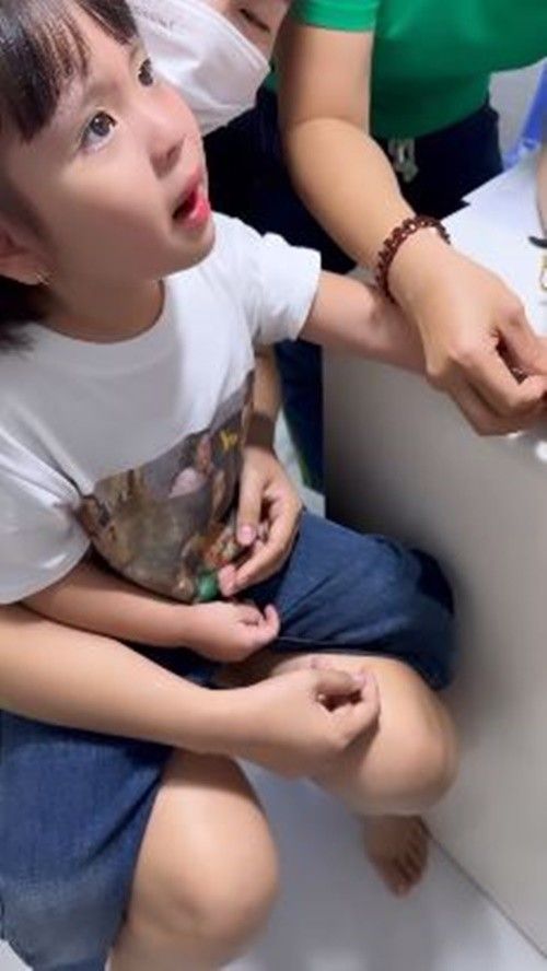Không chỉ thế sau khi được bác sĩ lấy máu xong, He còn nói 1 câu khiến ai cũng bất ngờ "Con cảm ơn bác sĩ". Bản thân nữ diễn viên Chị chị em em khi đăng tải clip cũng viết đầy xúc động "Lúc bả cảm ơn bác sĩ là mình rưng rưng nước mắt. Kiểu vừa thương vừa bít đau lắm mà bả ráng chịu để tối được ngủ với Út".