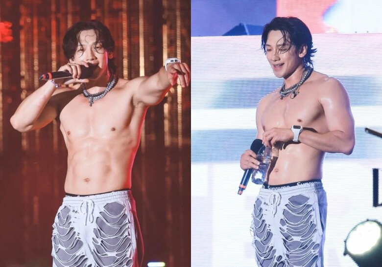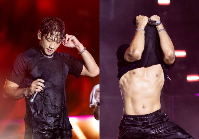 Trước đó, màn trình diễn của “ông chú U45” Bi Rain đã được bàn tán nhiều khi anh chiếm spotlight trong đêm nhạc đầu tiên với khoảnh khắc khoe thân hình 6 múi săn chắc. Buổi diễn này cũng đánh dấu lần thứ 5 Bi Rain đặt chân đến Việt Nam, lần gần nhất là đại nhạc hội tháng 6/2019 ở Sân vận động Quốc gia Mỹ Đình (Hà Nội). Ngôi sao sinh năm 1982 đã chứng minh sức hút riêng khi diện trang phục khá đơn giản, tuy nhiên màn trình diễn dưới nước của anh đã khéo léo khoe cơ bắp “cực phẩm”. Trong những lần biểu diễn trước đó, Bi Rain cũng từng khoe “đặc sản” trên sân khấu, khẳng định vị thế “huyền thoại sống” của Kpop.