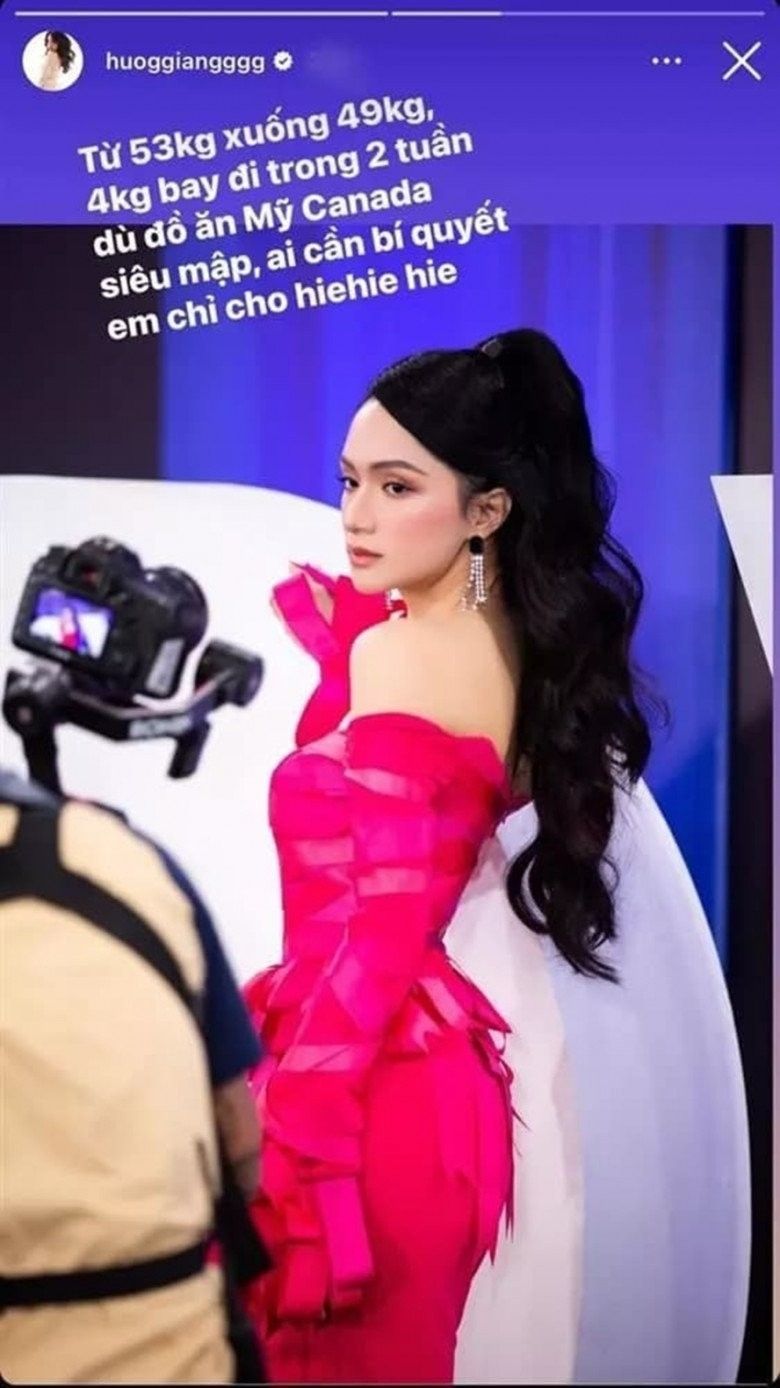 Cô giảm từ 53kg xuống 49kg. Người đẹp còn hé lộ cô lội dòng cân nặng hiệu quả dù đi công tác ăn toàn đồ béo mập.