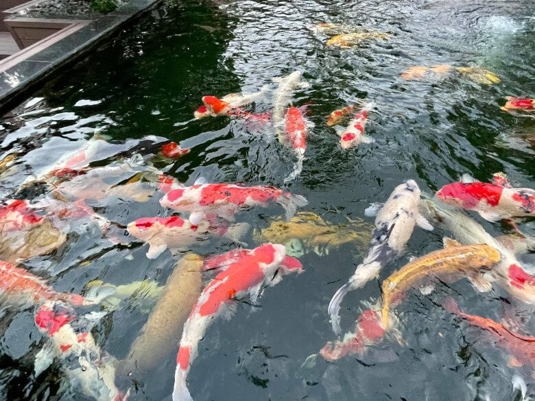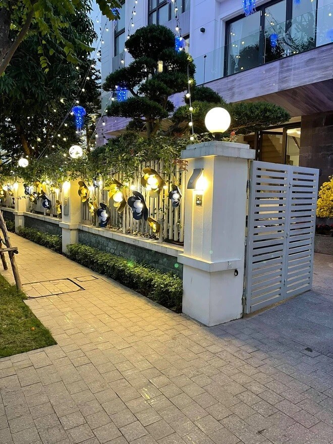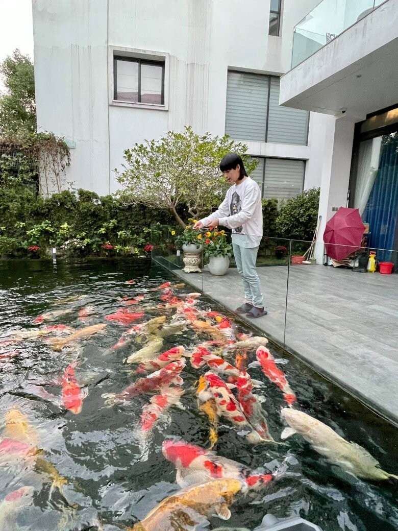 Nhiều người phải trầm trồ trước căn nhà được chăng đèn rực rỡ từ cổng vào, sân vườn xanh mát với rất nhiều hoa lá, đặc biệt là hồ cá Koi hoành tráng ở ngay trước nhà.