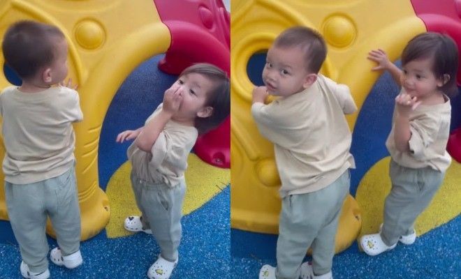 2 nhóc tỳ vừa được bố mẹ dẫn đi công viên chơi cuối tuần, nói không ngừng với ngôn ngữ khó ai hiểu.