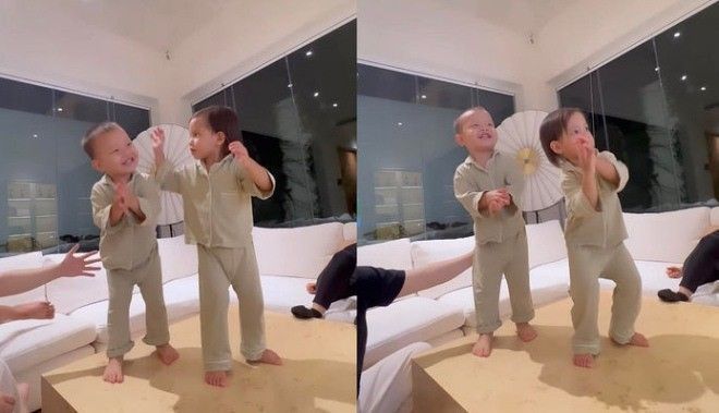 Vào buổi tối trước đó, 2 vợ chồng nổi tiếng cũng khiến dân mạng phải “cười lăn” với đoạn clip Leon - Lisa nhảy múa theo nhạc. So với cậu em út nghịch ngợm, Lisa bộc lộ cảm âm rất tốt, được cho là di truyền “máu” nghệ thuật của mẹ khi chỉ cần nghe nhạc là đã nhún nhảy.