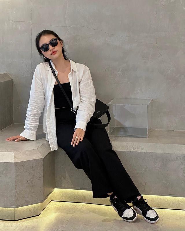 Những chiếc áo sơ mi cũng được cô nàng phối cực xinh với nhiều kiểu cách khác nhau, khi thì mix cùng quần ống suông, khi lại cá tính với chân váy tennis.