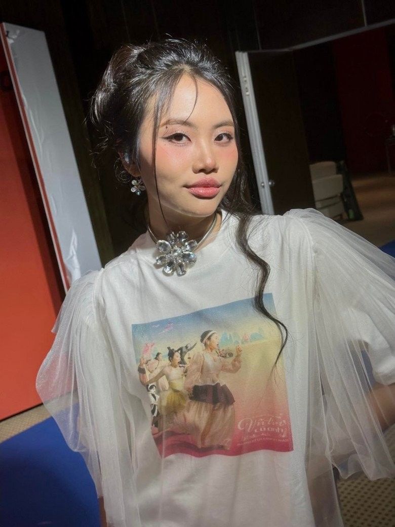 Những chiếc áo tanktop hay croptop thường được nữ ca sĩ trẻ ưu ái mix cùng quần ống suông cạp cao. Phong cách của Phương Mỹ Chi hướng đến sự thoải mái, tự do.