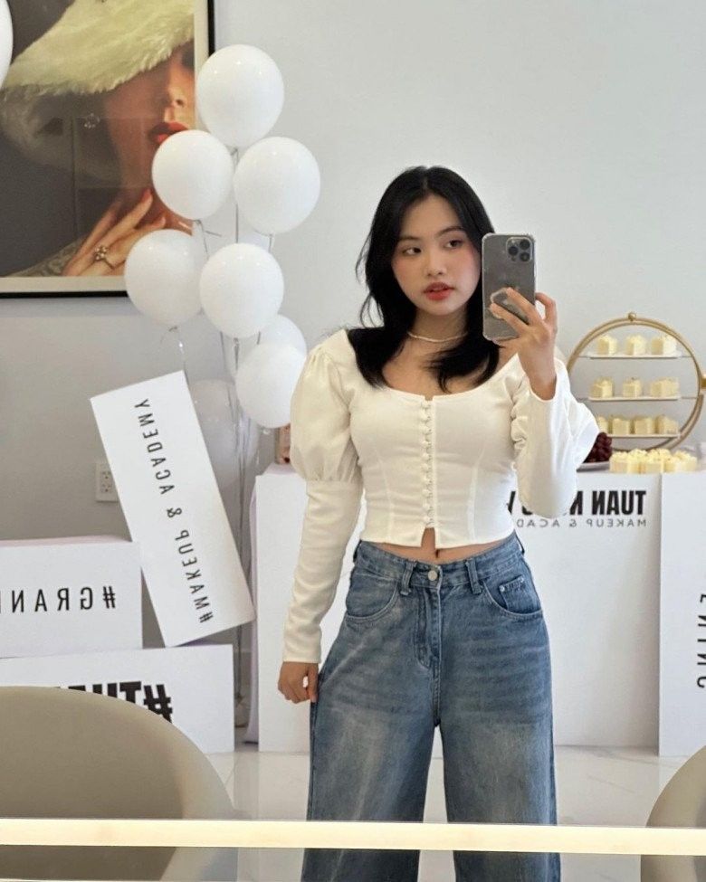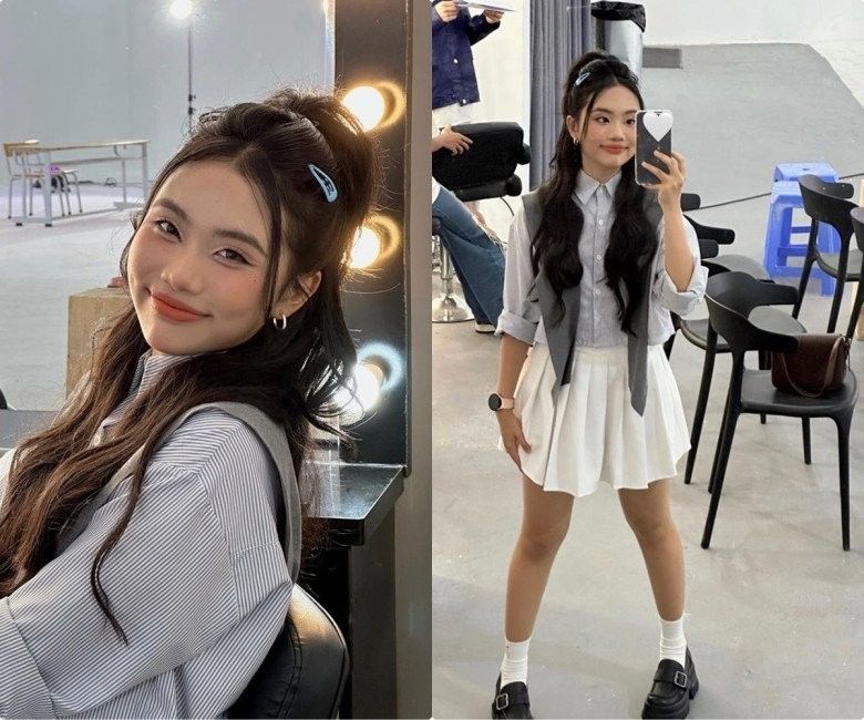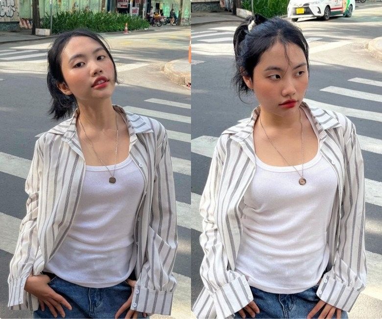 Phương Mỹ Chi ngày thường là tín đồ của xu hướng mặc layer. Cô nàng mix áo trong áo ngoài cực phong cách.