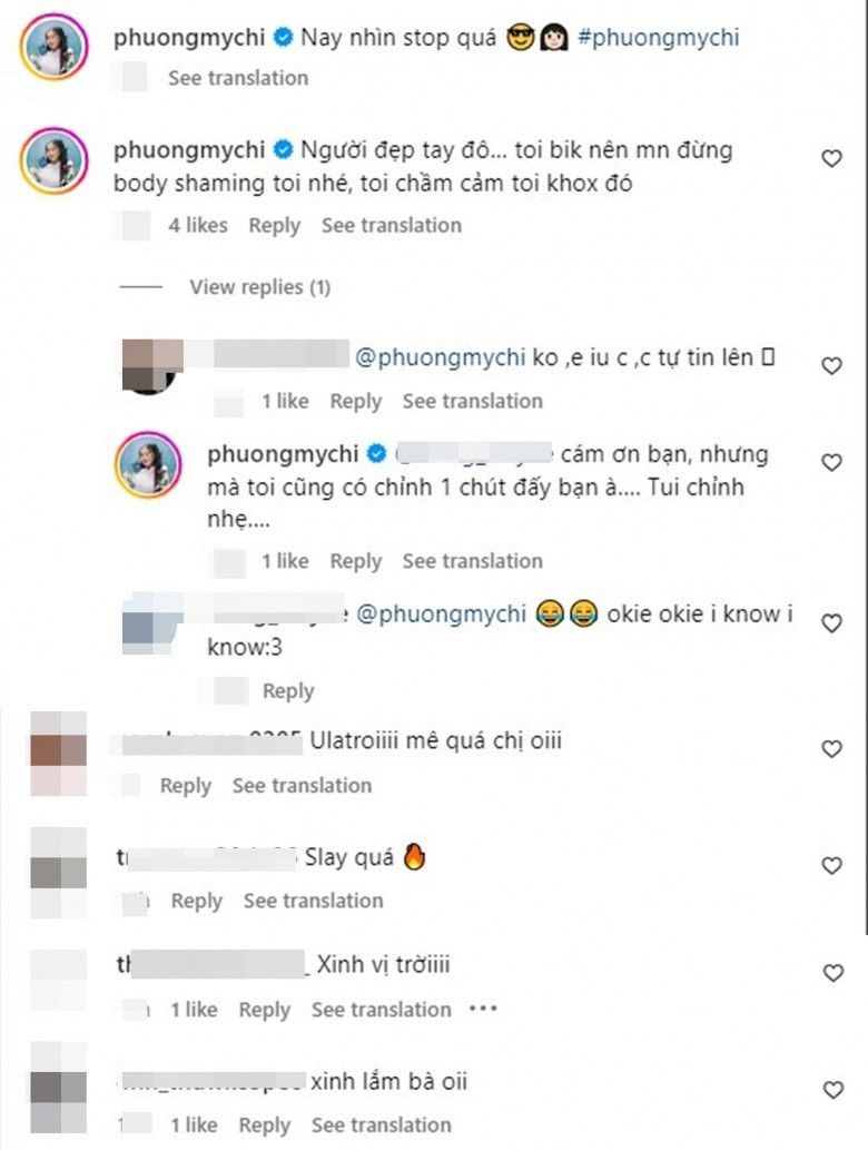 Cô nàng đăng tải kèm dòng chú thích: "Nay nhìn stop quá" liền nhận được rất nhiều lượng tương tác. Thú vị hơn chính là câu nói van xin của Phương Mỹ Chi.