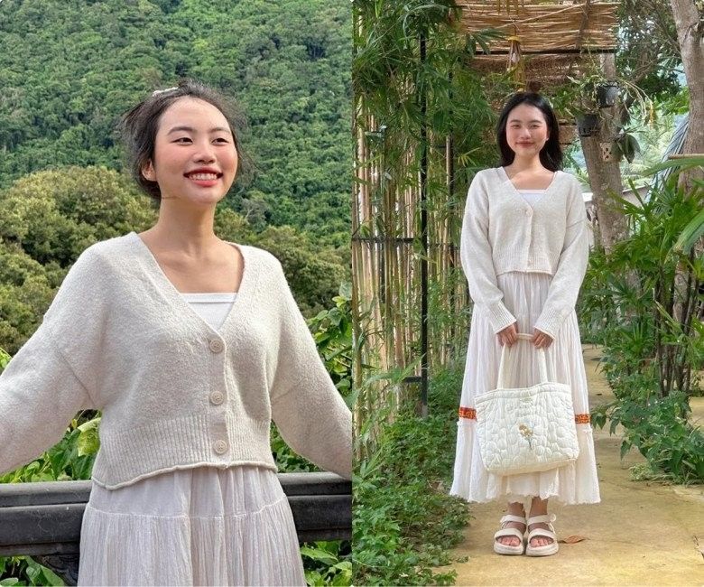 Những chiếc áo khoác của cô nàng thường là áo sơ mi có chất liệu mỏng nhẹ, phù hợp với khí hậu miền Nam, mặt khác lại rất thời thượng.