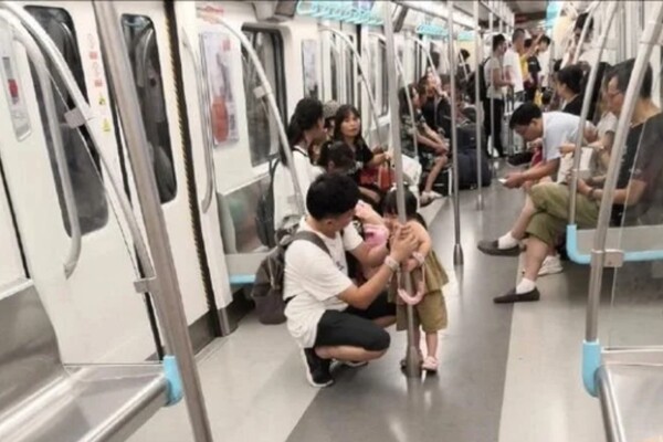 Cách đây không lâu, mạng xã hội xứ Trung lan truyền những bức hình chụp một người đàn ông đưa con gái nhỏ tầm khoảng độ tuổi mẫu giáo di chuyển trên chuyến tàu điện. Mặc dù việc bố mẹ đưa trẻ sử dụng giao thông công cộng không phải là điều gì xa lạ trong cuộc sống hiện đại ngày nay, tuy nhiên điều khiến tất cả hành khách trên chuyến tàu điện chú ý hai bố con, đó là thứ trên tay họ.