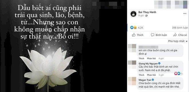 Thúy Hạnh và Thúy Hằng thông báo tin buồn lên trang cá nhân, đông đảo sao Việt vào an ủi và động viên.