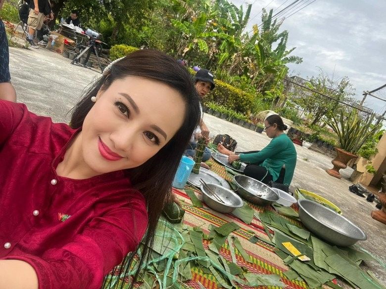 Hoài Anh tâm sự, nhờ có chương trình nên cô mới được "bung lụa" đến thế. Bên cạnh hình ảnh một mình, BTV 8x cũng chia sẻ loạt ảnh bên bà con một cách gần gũi. Cô thổ lộ: "Những nẻo đường đất nước. Cà Mau một chiều giáp Tết. Những khuôn mặt cười, những tà áo bà ba duyên dáng tung bay, và những cái nắm tay níu giữ… Có nơi nào như mảnh đất này không… xa lắc lơ mà lòng người lại gụi gần đến thế".