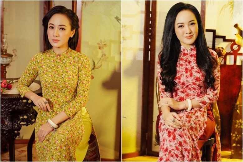 Việc mặc áo dài quanh năm tưởng chừng là dễ gây nhàm chán, nhưng bà mẹ một con rất kỹ tính trong việc chọn áo dài để lúc nào cũng mới mẻ trong mắt khán giả. Có khi là áo dài mang họa tiết hoa nhí ngọt ngào, trang nhã và trẻ trung.