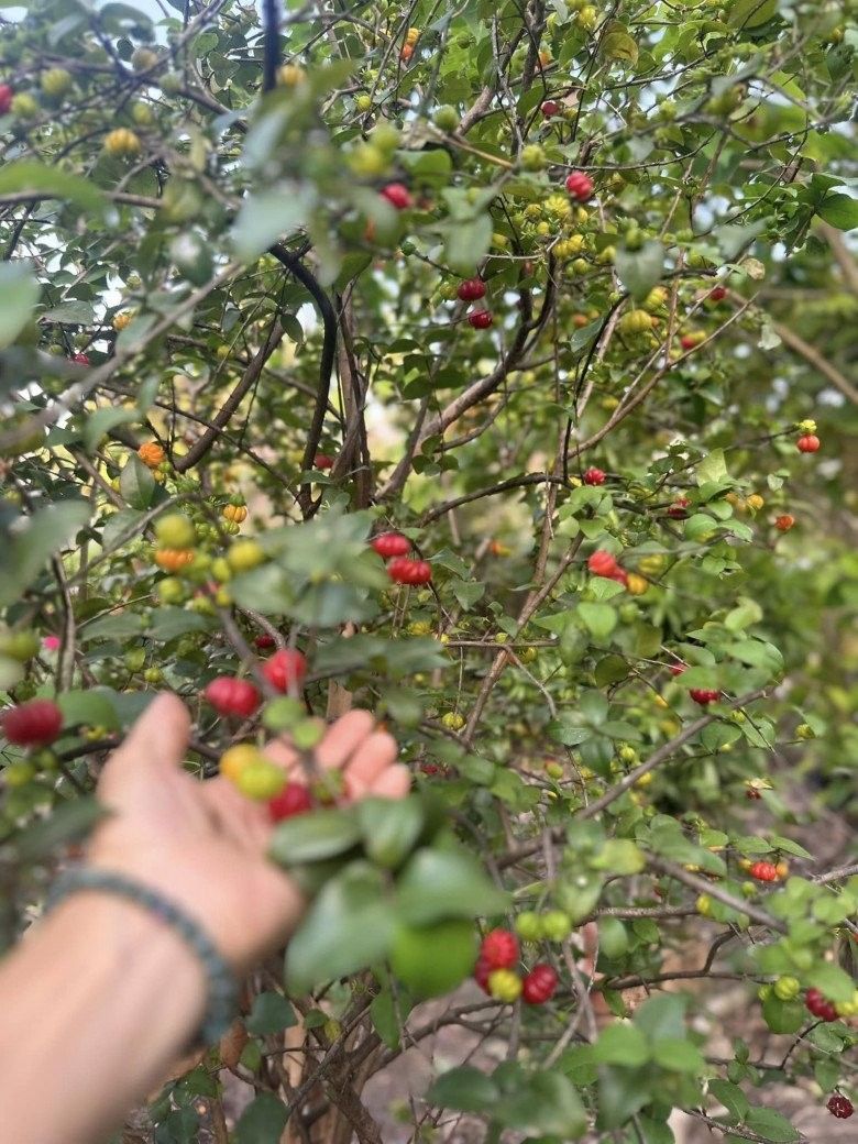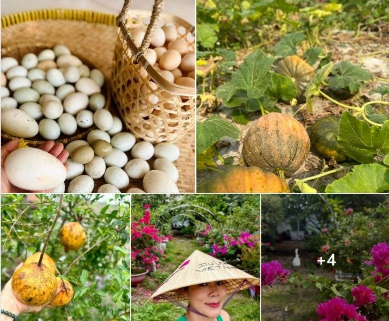Rất nhiều loại hoa trái khác nhau trên mảnh đất của vợ chồng Mỹ Lệ khiến cô tự hào rằng "gi gỉ gì gi cái gì cũng có".
