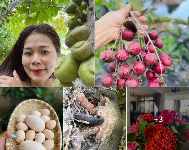 Đặc biệt trên trang cá nhân, nữ ca sĩ thường khoe khung cảnh bên trong khu vườn rộng hàng nghìn m2 của gia đình mình ở Tân Bình, TP. HCM. Mới đây, cô lại thích thú chia sẻ về khu vườn đầy hoa trái và bày tỏ: "Gi gỉ gì gi cây gì cũng có. Ở đâu không có thì ngó vườn O. Ai muốn làm ông to bà nậy chi cũng được, O làm nông dân cho ấm bụng! Rứa nghe bà con".