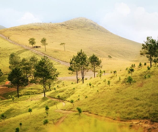 Từ chân núi lên tới đỉnh Phượng Hoàng là quãng đường đồi núi vòng vèo, để bạn vừa đi vừa ngắm cảnh. Du khách có thể gửi xe để trekking khoảng 2 km hoặc đi xe máy, thuê xe ôm đưa lên lên tận đỉnh. Các bãi cỏ ở Phượng Hoàng rất thích hợp để khám phá, cắm trại cuối tuần.