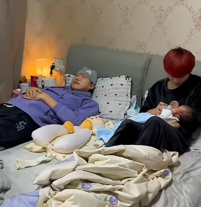 Hiện tại, Xiaoyue cũng đang trong khoảng thời gian ở cữ, cô được chồng đồng hành chăm sóc con sơ sinh.