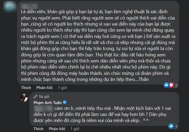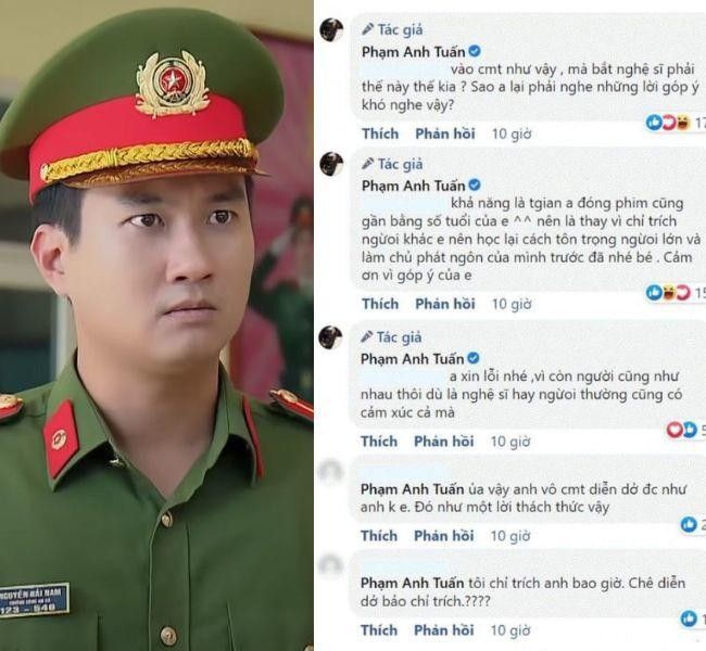 Cư dân mạng cho rằng "Trưởng công an xã Tân Xuân" không nên tự ái khi bị chê diễn không tốt như vậy. Đáng lẽ anh nên tiếp thu để phát triển diễn xuất của mình thì tốt hơn. Tuy nhiên, Anh Tuấn đã đáp trả lại rất gay gắt như: "Dở được như anh không em"; "Vào comment như vậy mà bắt nghệ sĩ phải thế này thế kia? Sao anh lại phải nghe những lời góp ý khó nghe như vậy", "Nghệ sĩ hay người thường đều có cảm xúc cả mà"… Cách đáp trả của nam diễn viên sinh năm 1990 liền bị chỉ trích là cãi cùn và đang thách thức khán giả.