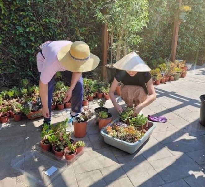 Cả 2 cùng nhau làm vườn, tỉa cây, tận hưởng cuộc sống bình yên, hạnh phúc.