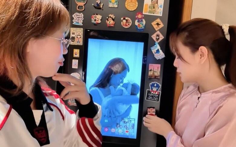 Chi tiết đắt giá và gây chú ý nhất trong căn bếp chính là chiếc tủ lạnh Side-by-side hiện đại. Đây không chỉ là một thiết bị bảo quản thực phẩm mà còn là một "cuốn nhật ký hành trình" của nữ ca sĩ.