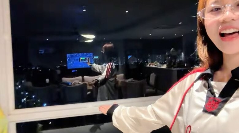 Góc thưởng thức bữa tối "chill" hết nấc của các nghệ sĩ bên khung cửa kính lớn, nơi có thể ngắm nhìn toàn cảnh thành phố lung linh về đêm.