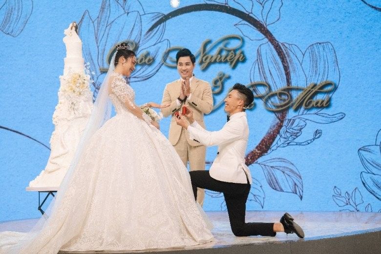 Đáng chú ý là màn cầu hôn lãng mạn của Quốc Nghiệp dành tặng cho "một nửa" của mình ngay trên sân khấu. Chương trình cũng tạo ra một khung cảnh đám cưới vô cùng sang trọng, lung linh. Quốc Nghiệp - Ngọc Mai trải qua nhiều cảm xúc, từ vui vẻ, bất ngờ đến vỡ òa cảm xúc.