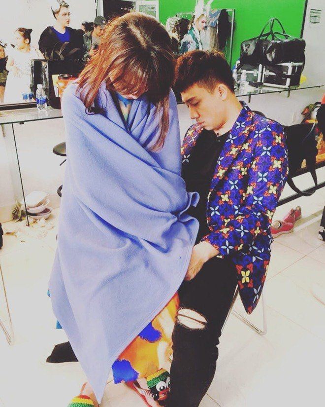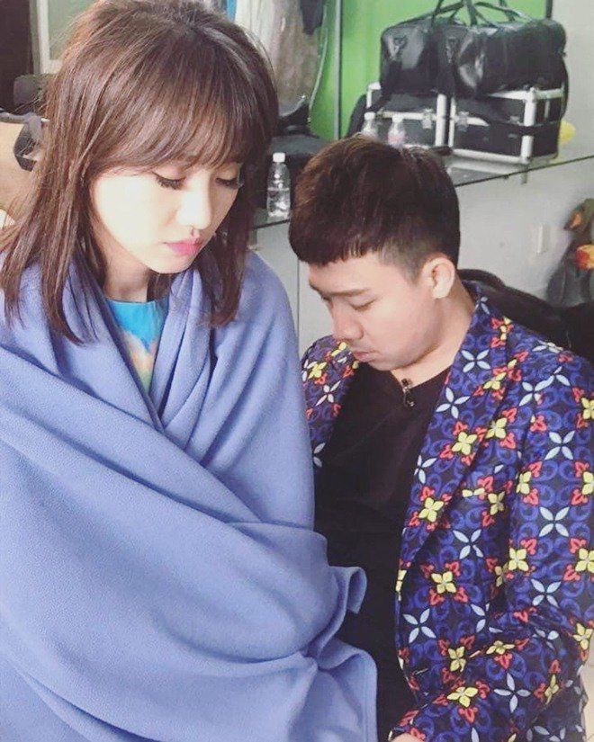 Hari Won, Trấn Thành cùng ngủ ngồi trong hậu trường chạy show.
